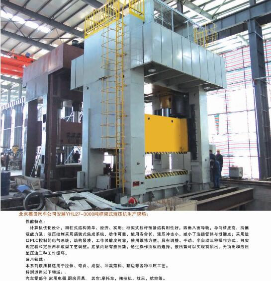 公司能夠為市場提供42大類500余個品種的標準液壓機和非標專用、精密伺服液壓機。產(chǎn)品廣泛應(yīng)用于汽車、航天、粉末冶金、船舶、輕工、建筑、電子、家用電器等行業(yè),并代表著我國通用液壓機的發(fā)展水平。公司生產(chǎn)、設(shè)計、開發(fā)的液壓機產(chǎn)品完全能夠滿足國內(nèi)不同用戶多層次的需要。
